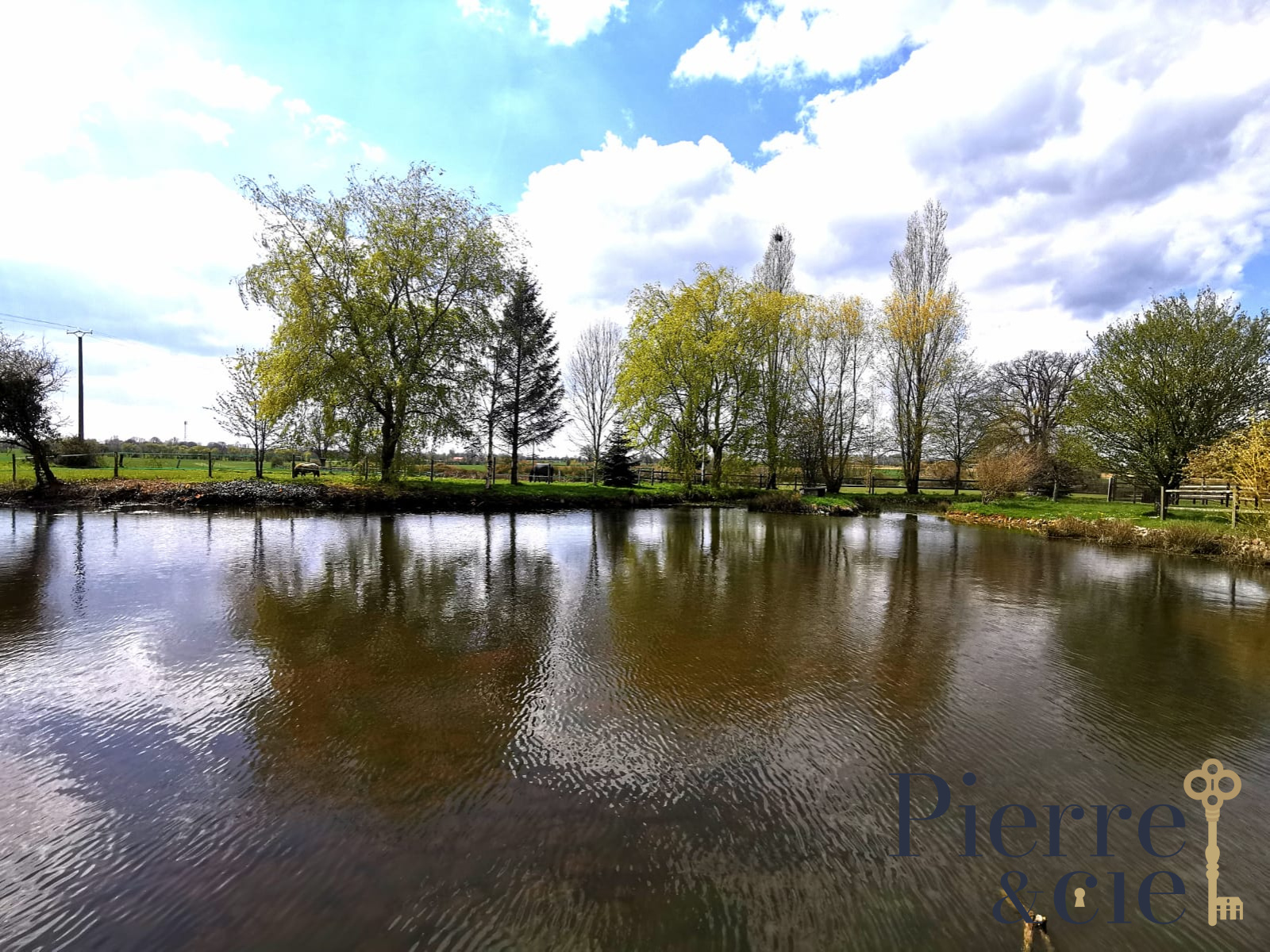 Les herbages sont cloturés et séparés en paddocks. Un étang est également présent sur la propriété.